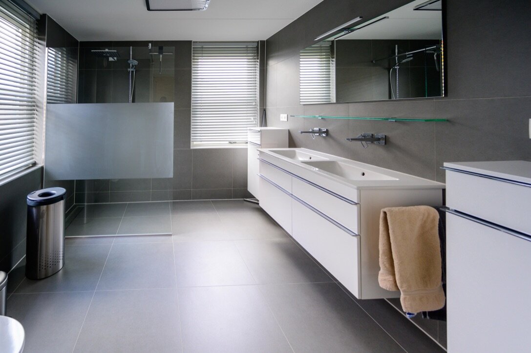 Super strakke badkamer met meubels van Villeroy & Boch.